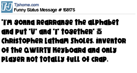 X says "I'm gonna rearrange the alphabet and put "U" and "I" together" ~ Christopher Latham Sholes, inventor of the QWERTY keyboard and only player not totally full of crap.