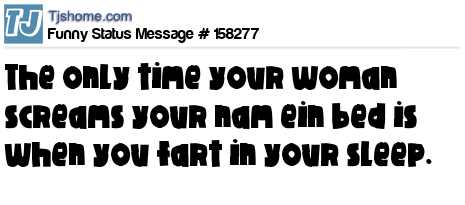 X says The only time your woman screams your nam ein bed is when you fart in your sleep.