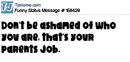 - # 164676 Don't be ashamed of who are you. That's your parents job.
