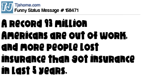 X says A record 93 million Americans are out of work, and more people lost insurance than got insurance in last 5 years.