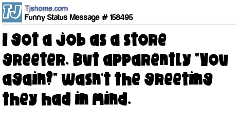X says I got a job as a store greeter. But apparently "You again?" wasn't the greeting they had in mind.