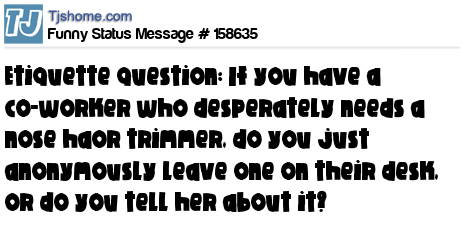 X says Etiquette question: If you have a co-worker who desperately needs a nose haor trimmer, do you just anonymously leave one on their desk, or do you tell her about it?