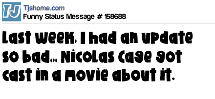 X Last week, I had an update so bad,,, Nicolas Cage got cast in a movie about it.