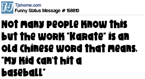 - # 178548 "Karate" is an old Japanese word that means, "My kid can't hit a baseball."