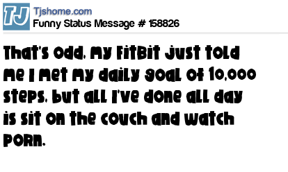 X says That's odd, my FitBit just told me I met my daily goal of 10,000 steps, but all I've done all day is sit on the couch and watch porn.