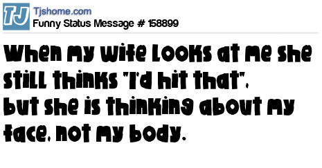 X says When my wife looks at me she still thinks "I'd hit that", but she is thinking about my face, not my body.