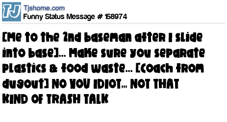 X [Me to the 2nd baseman after I slide into base]... Make sure you separate plastics & food waste... [Coach from dugout] NO YOU IDIOT,,, NOT THAT KIND OF TRASH TALK