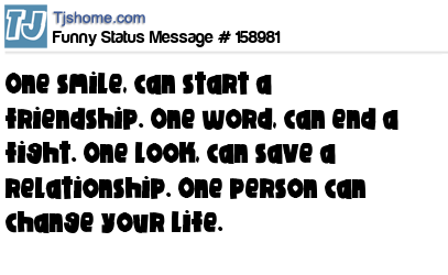 X says One smile, can start a friendship. One word, can end a fight. One look, can save a relationship. One person can change your life.