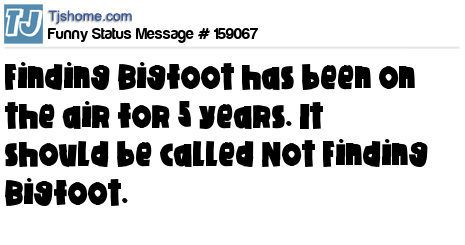- # 133877 Unless I missed an international news story, the TV show "Finding Bigfoot" should probably be called "Not Finding Bigfoot"