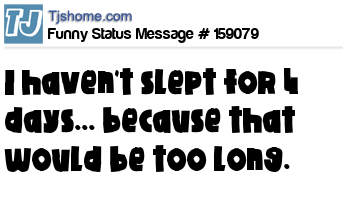 - # 15703 hasn't slept for ten days.........................................because that would be too long.