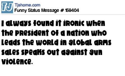 X says I always found it ironic when the president of a nation who leads the world in global arms sales speaks out against gun violence.