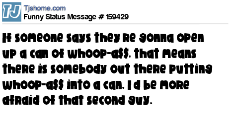 - # 178727 If someone says they’re gonna open up a can of whoop-ass, that means there is somebody out there putting whoop-ass into a can. I’d be more afraid of that second guy.
