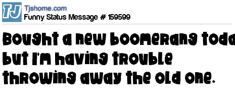 - # 112777 Frustration is when you bought a new boomerang and notice that you can not throw away the old one