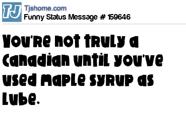 X says You're not truly a Canadian until you've used maple syrup as lube.