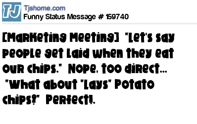 X says [Marketing Meeting] "Let's say people get laid when they eat our chips." Nope, too direct... "What about "Lays" Potato chips?" Perfect!.