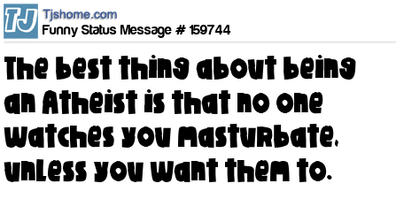 X says The best thing about being an Atheist is that no one watches you masturbate, unless you want them to.