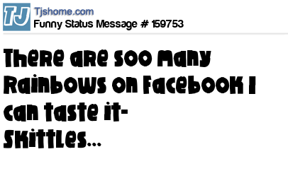 X says There are soo many Rainbows on Facebook I can taste it- Skittles...