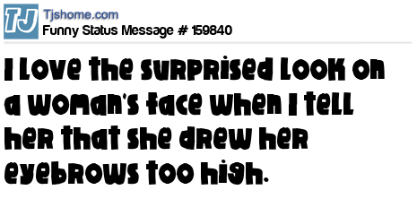 X says I love the surprised look on a woman's face when I tell her that she drew her eyebrows too high.
