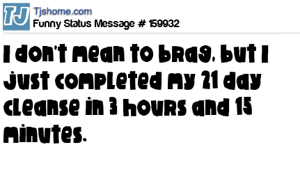 X says I don't mean to brag, but I just completed my 21 day cleanse in 3 hours and 15 minutes.