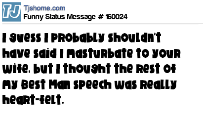 X says I guess I probably shouldn't have said I masturbate to your wife, but I thought the rest of my Best Man speech was really heart-felt.