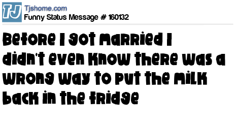 - # 190031 Untill I got married, I never knew there was a wrong way to put the milk back into the fridge.