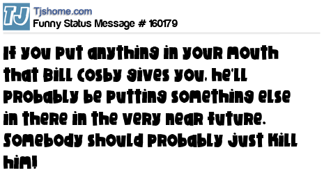 X If you put anything in your mouth that Bill Cosby gives you, he'll probably be putting something else in there in the very near future. Somebody should probably just kill him!