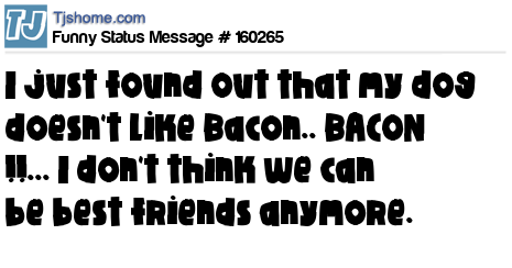 X says I just found out that my dog doesn't like Bacon.. BACON !!... I don't think we can be best friends anymore.
