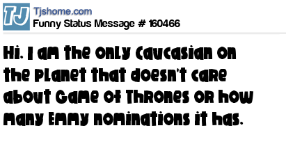 X says Hi. I am the only Caucasian on the planet that doesn't care about Game of Thrones or how many Emmy nominations it has.