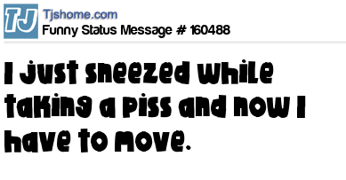 - # 204191 Think you're having a bad day? I sneezed while taking a piss this morning...