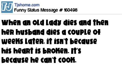 X When an old lady dies and then her husband dies a couple of weeks later, it isn't because his heart is broken. It's because he can't cook.
