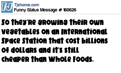 X so they're growing their own vegetables on an International Space Station that cost billions of dollars and it's still cheaper than Whole Foods.
