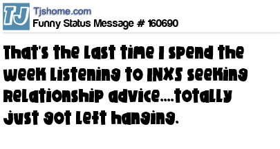 X says That's the last time I spend the week listening to INXS seeking relationship advice....totally just got left hanging.