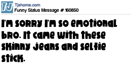 X says I'm sorry I'm so emotional bro. It came with these skinny jeans and selfie stick.
