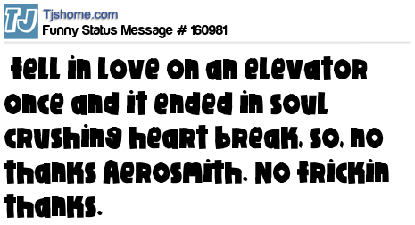 X says fell in love on an elevator once and it ended in soul crushing heart break, so, no thanks Aerosmith. No frickin thanks.