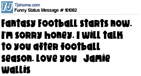 X says Fantasy Football starts now. I'm sorry honey. I will talk to you after football season. Love you Jamie wallis