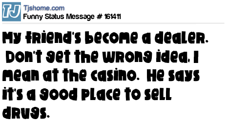 X says My friend's become a dealer. Don't get the wrong idea, I mean at the casino. He says it's a good place to sell drugs.