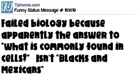 - # 126983 Failed biology because apparently the answer to "what is commonly found in cells?" Isn't "Blacks and Mexicans"