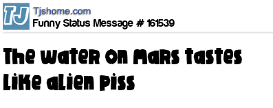 - # 161681 N.A.S.A. found water on Mars. Good thing they didn't find oil otherwise Mars might become the first terrorist planet.