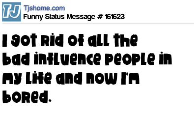 X says I got rid of all the bad influence people in my life and now I'm bored.
