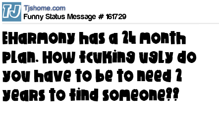 X eHarmony has a 24 month plan. How fcuking ugly do you have to be to need 2 years to find someone??