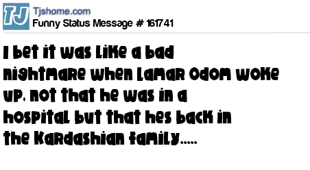 - # 161750 I feel kinda sorry for Lamar Odom. Imagine the horror of waking up from a coma and the first thing you see is a Kardashian.