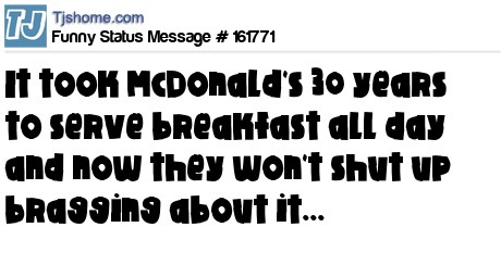 - # 94595 In my opinion, McDonalds cant serve breakfast all day because neither a 14 or a 70 yr old can see the difference between a hamburger and sausage patty