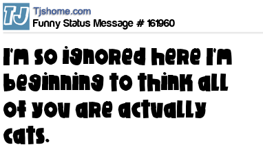 X says I'm so ignored here I'm beginning to think all of you are actually cats.