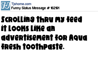 X says Scrolling thru my feed it looks like an advertisement for Aqua fresh toothpaste.