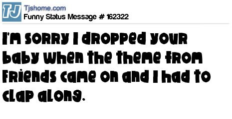 X says I'm sorry I dropped your baby when the theme from Friends came on and I had to clap along.