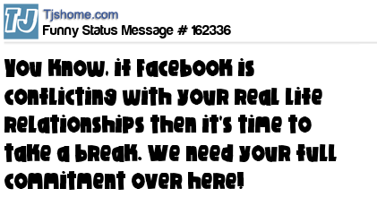 X says You know, if Facebook is conflicting with your real life relationships then it's time to take a break. We need your full commitment over here!