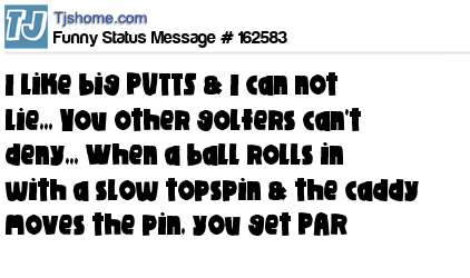 X says I like big PUTTS & I can not lie,,, You other golfers can't deny,,, When a ball rolls in with a slow topspin & the caddy moves the pin, you get PAR