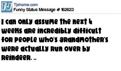 X says I can only assume the next 4 weeks are incredibly difficult for people who's grandmother's were actually run over by reindeer. ..