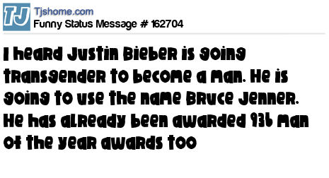 X says I heard Justin Bieber is going transgender to become a man. He is going to use the name Bruce Jenner. He has already been awarded 936 man of the year awards too