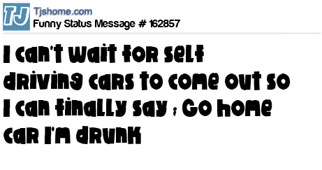X says I can't wait for self driving cars to come out so I can finally say ; Go home car I'm drunk